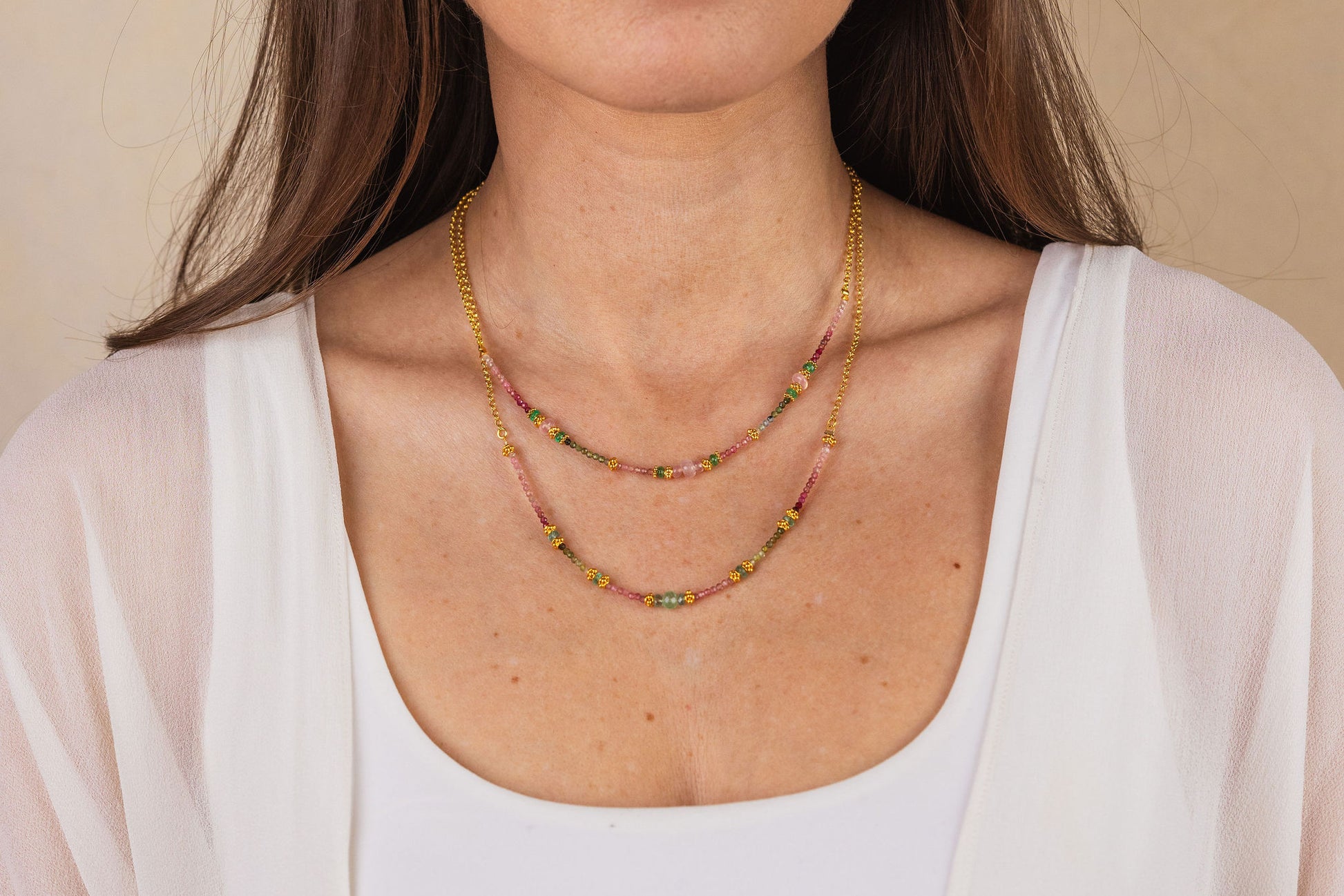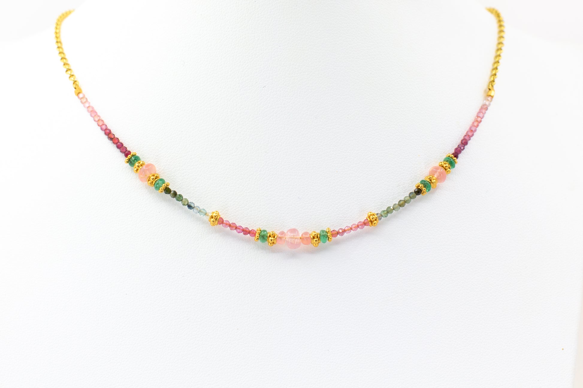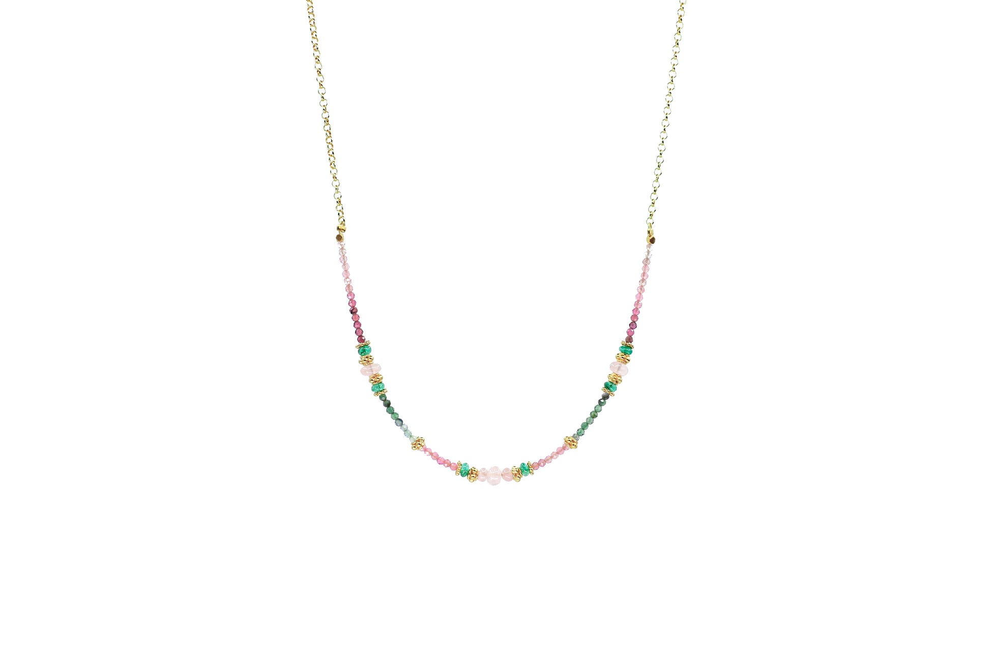 Watermelon tourmaline, Zambian emerald, rose quartz.