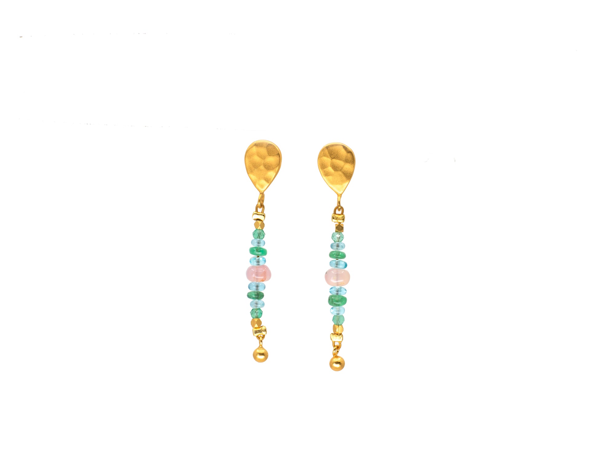 Ombre green onyx, apatite, Zambian emeralds, rose quartz, 24k vermeil gold over sterling silver earring post and back.