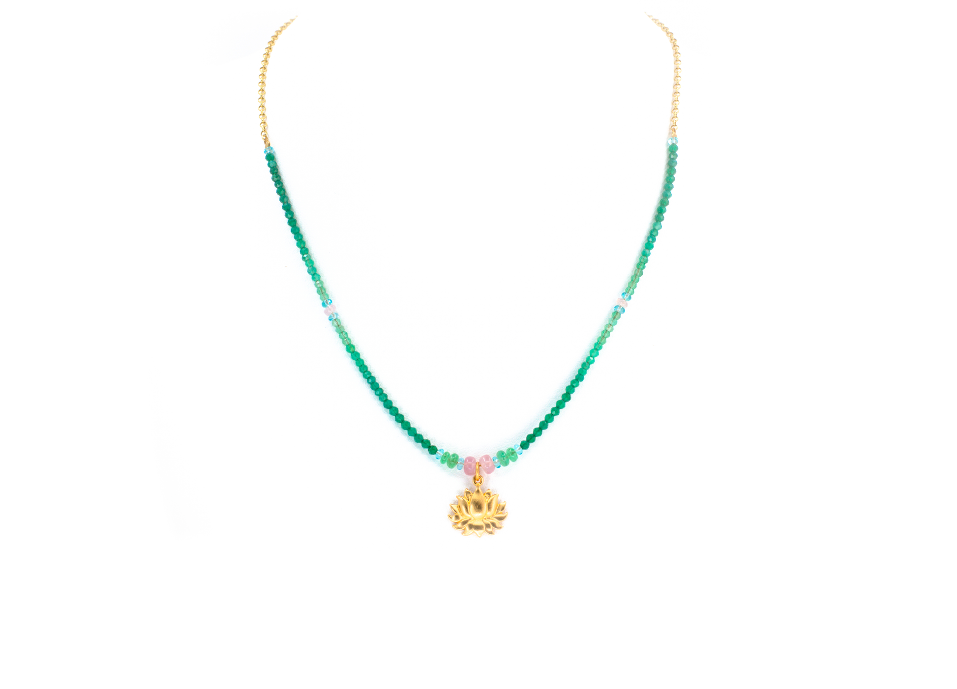 Ombre green onyx, apatite, Zambian emeralds, rose quartz, 22k vermeil gold over sterling silver adjustable chain and clasp